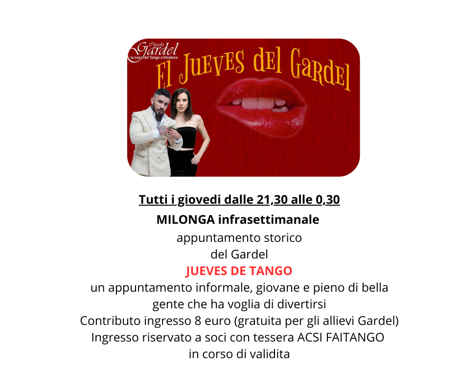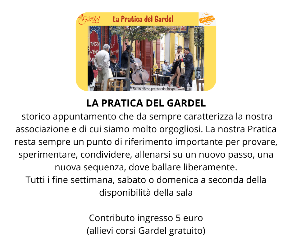 Allievi Gardel già iscritti ad almeno un corso:ciclo 3 lezioni euro 35 (Tangoyoung euro 30)